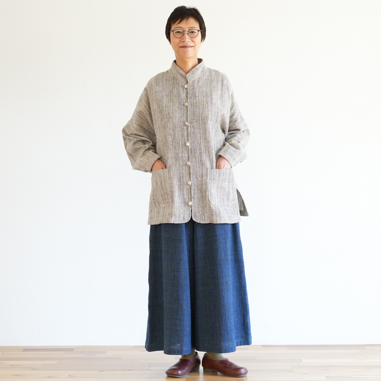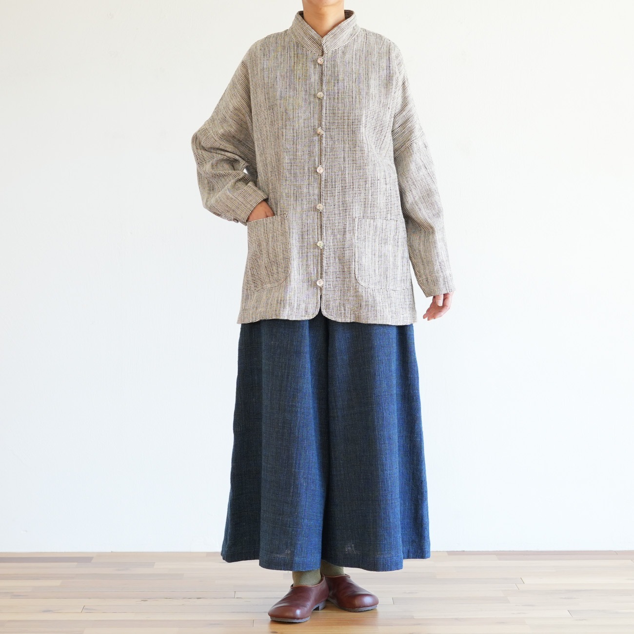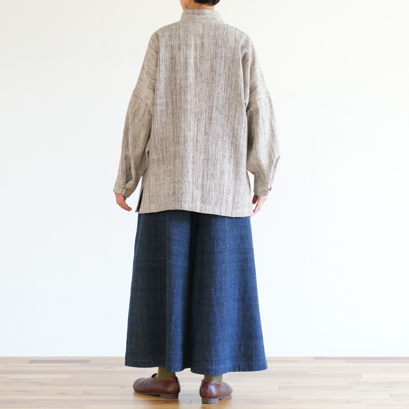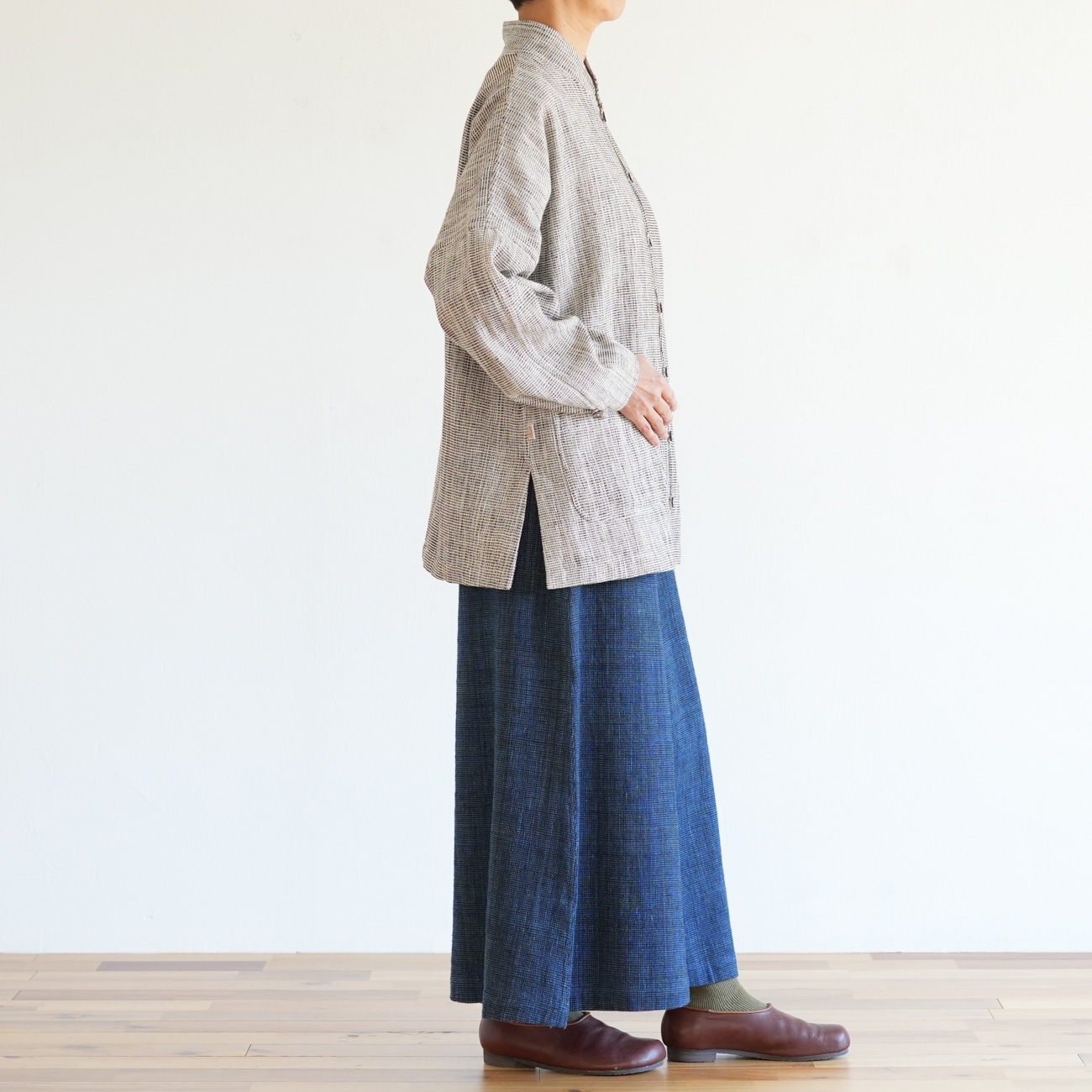 また、織物の生地はほとんど伸縮しませんので、ピッタリではなくゆとりがあるサイズをお選びいただくことをおすすめします。