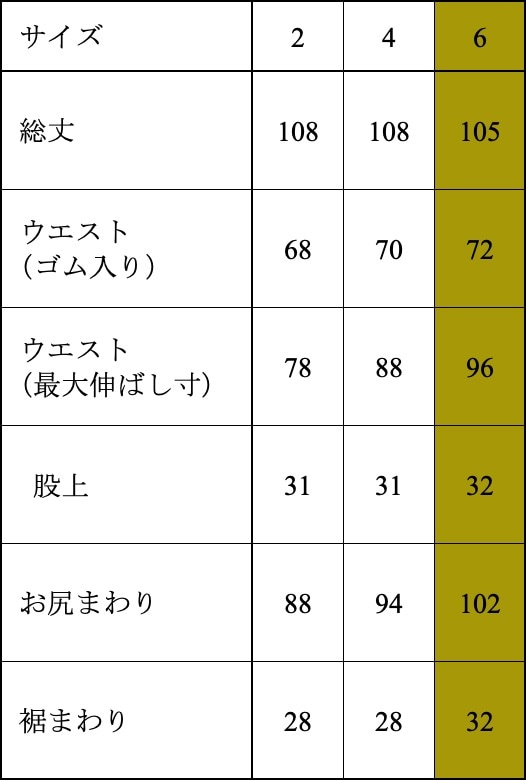 ・ウエスト(ゴム入り)は全く伸ばさずそのままの状態で採寸しています。