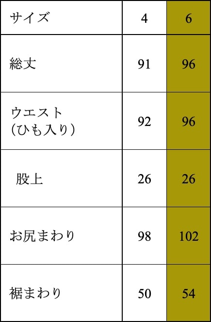 ・ウエスト(ひも入り)は紐を縮めない状態で採寸しています。