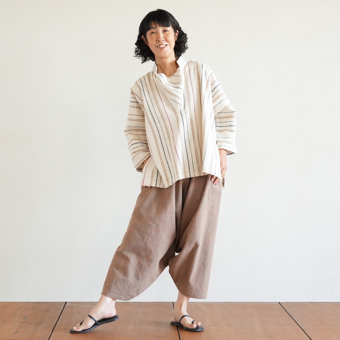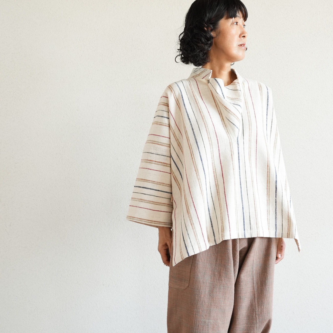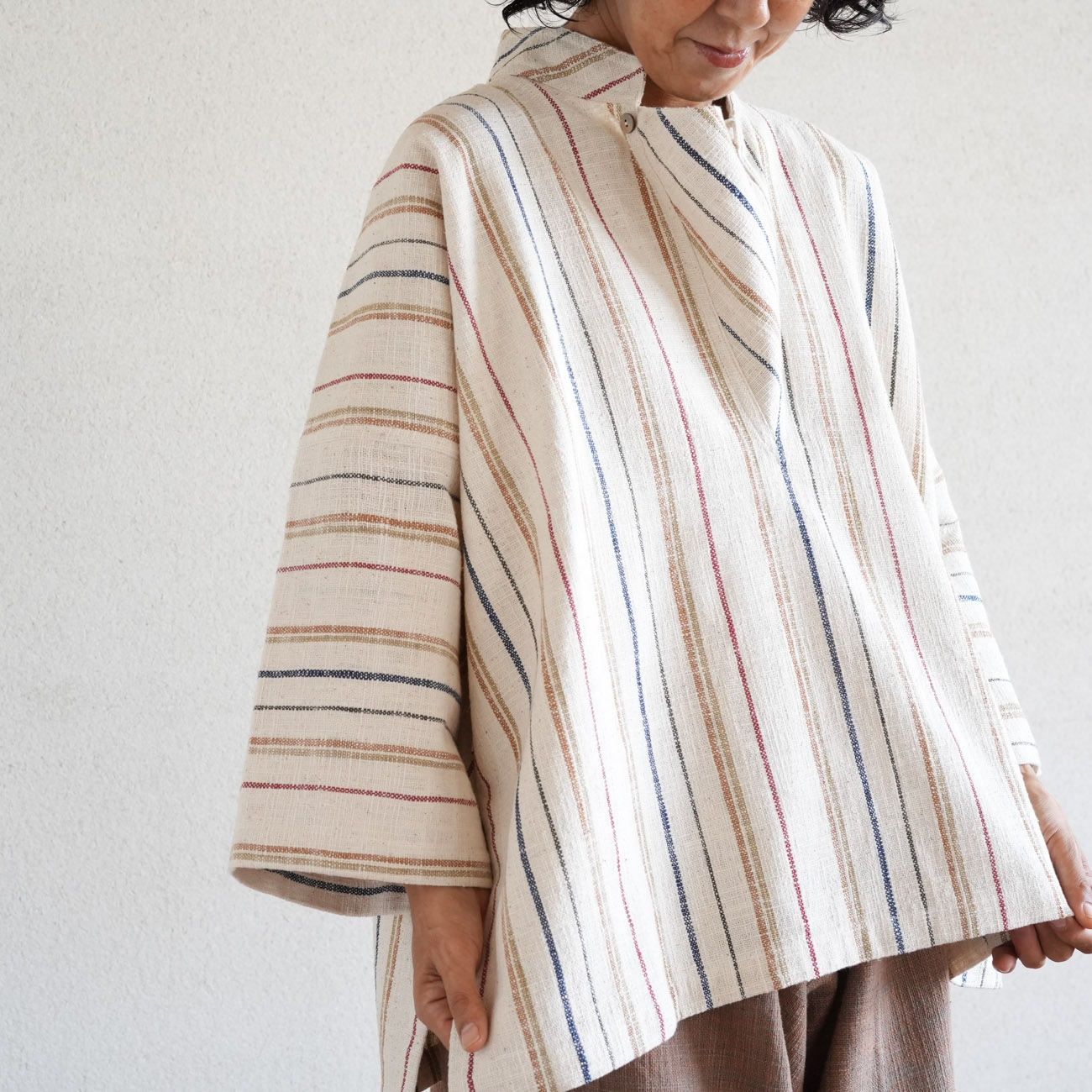 また、織物の生地はほとんど伸縮しませんので、ピッタリではなくゆとりがあるサイズをお選びいただくことをおすすめします。
