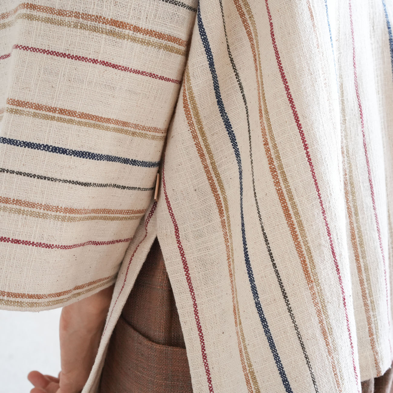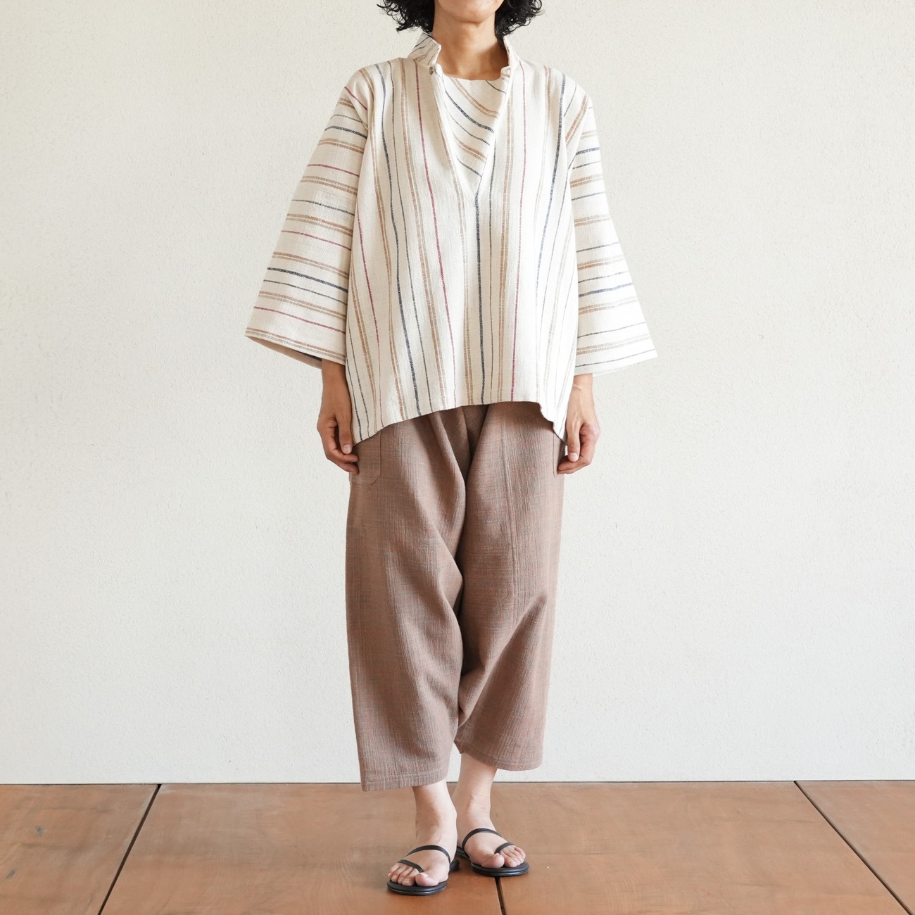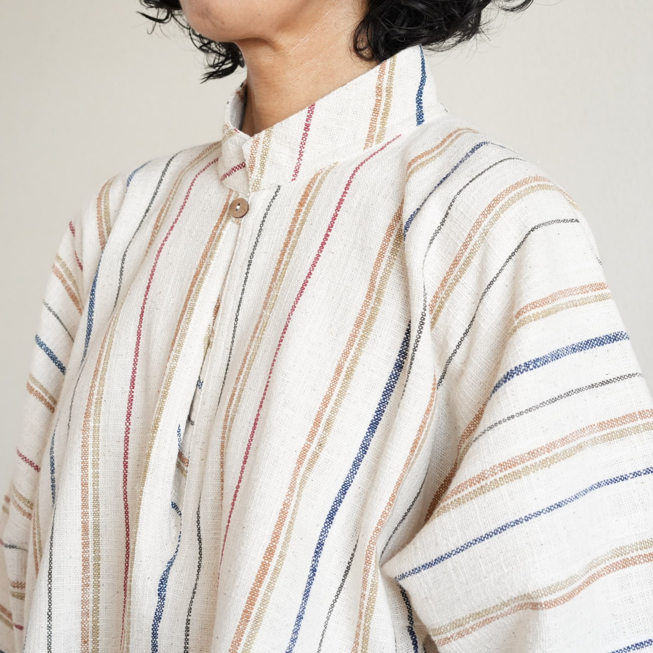 また、織物の生地はほとんど伸縮しませんので、ピッタリではなくゆとりがあるサイズをお選びいただくことをおすすめします。