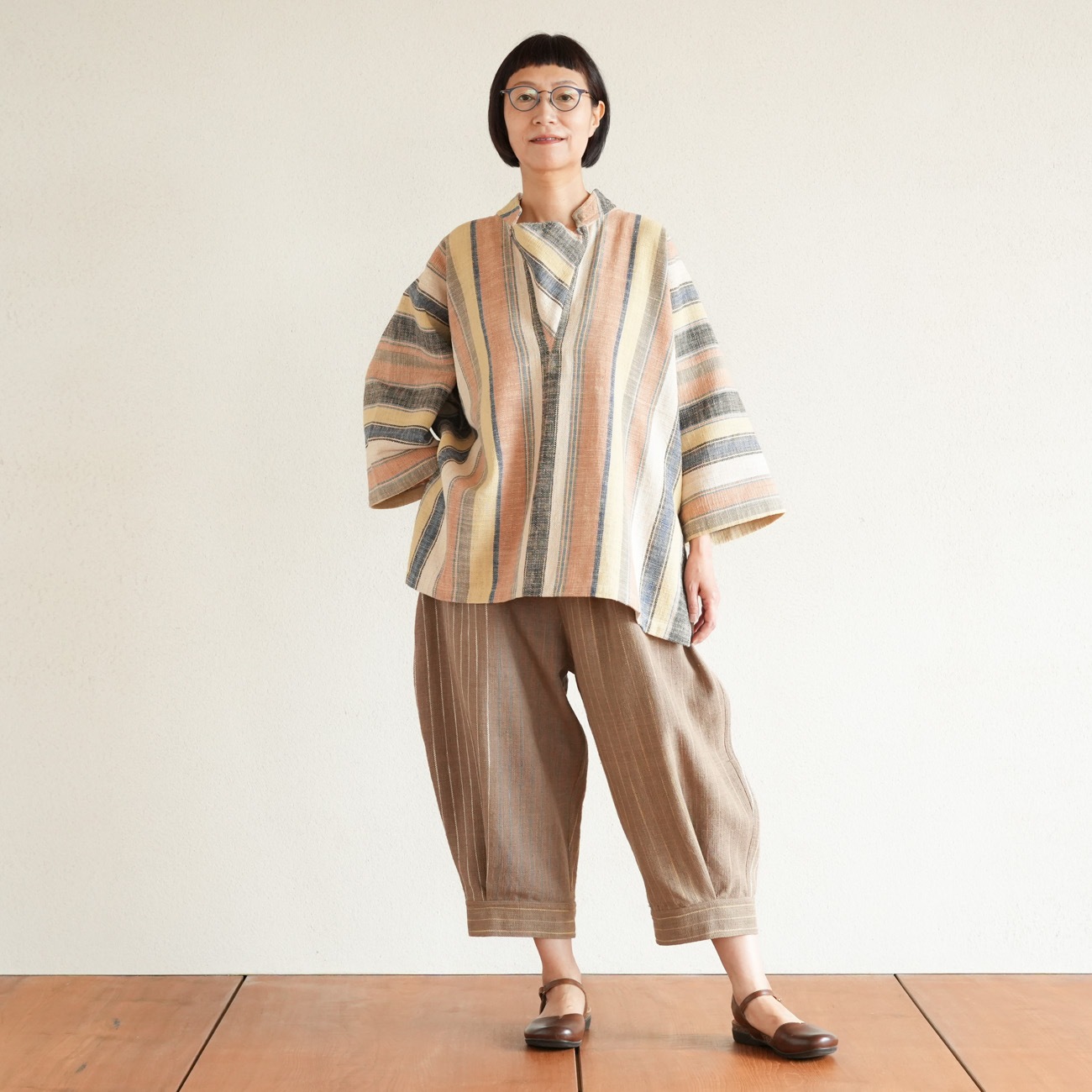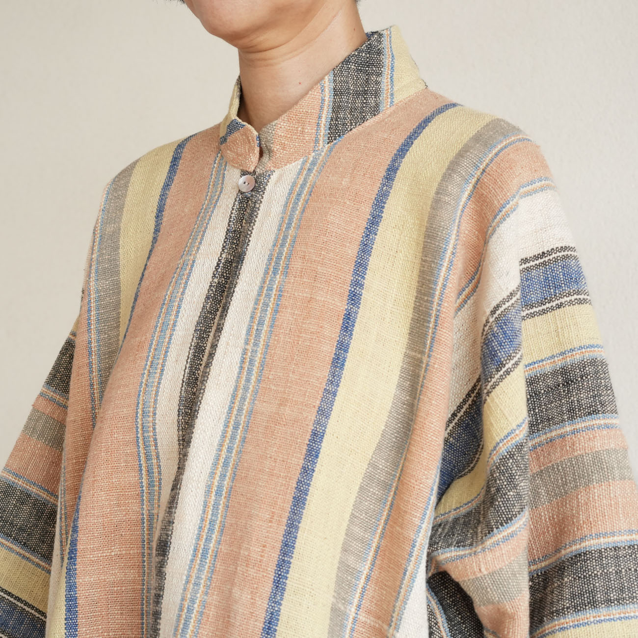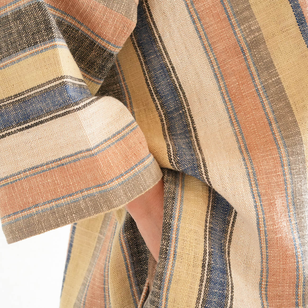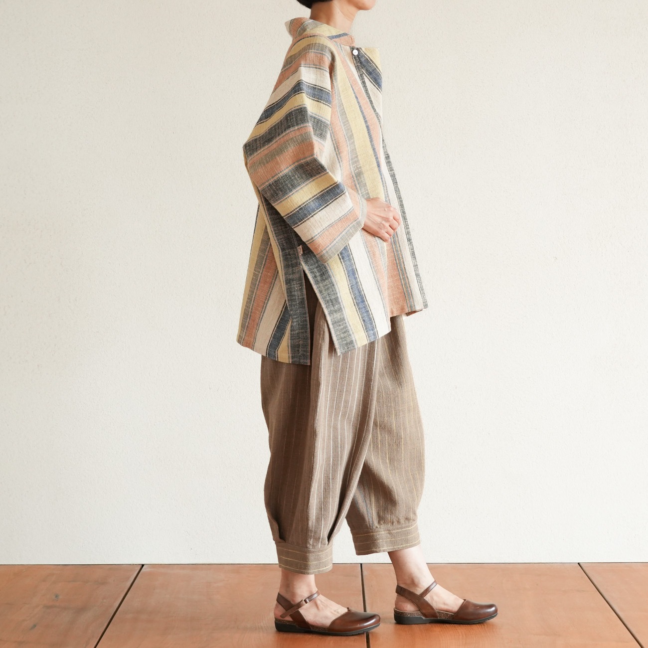 また、織物の生地はほとんど伸縮しませんので、ピッタリではなくゆとりがあるサイズをお選びいただくことをおすすめします。