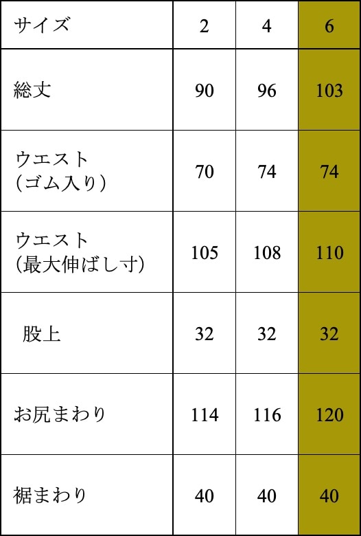 ・ウエスト(ゴム入り)は全く伸ばさずそのままの状態で採寸しています。