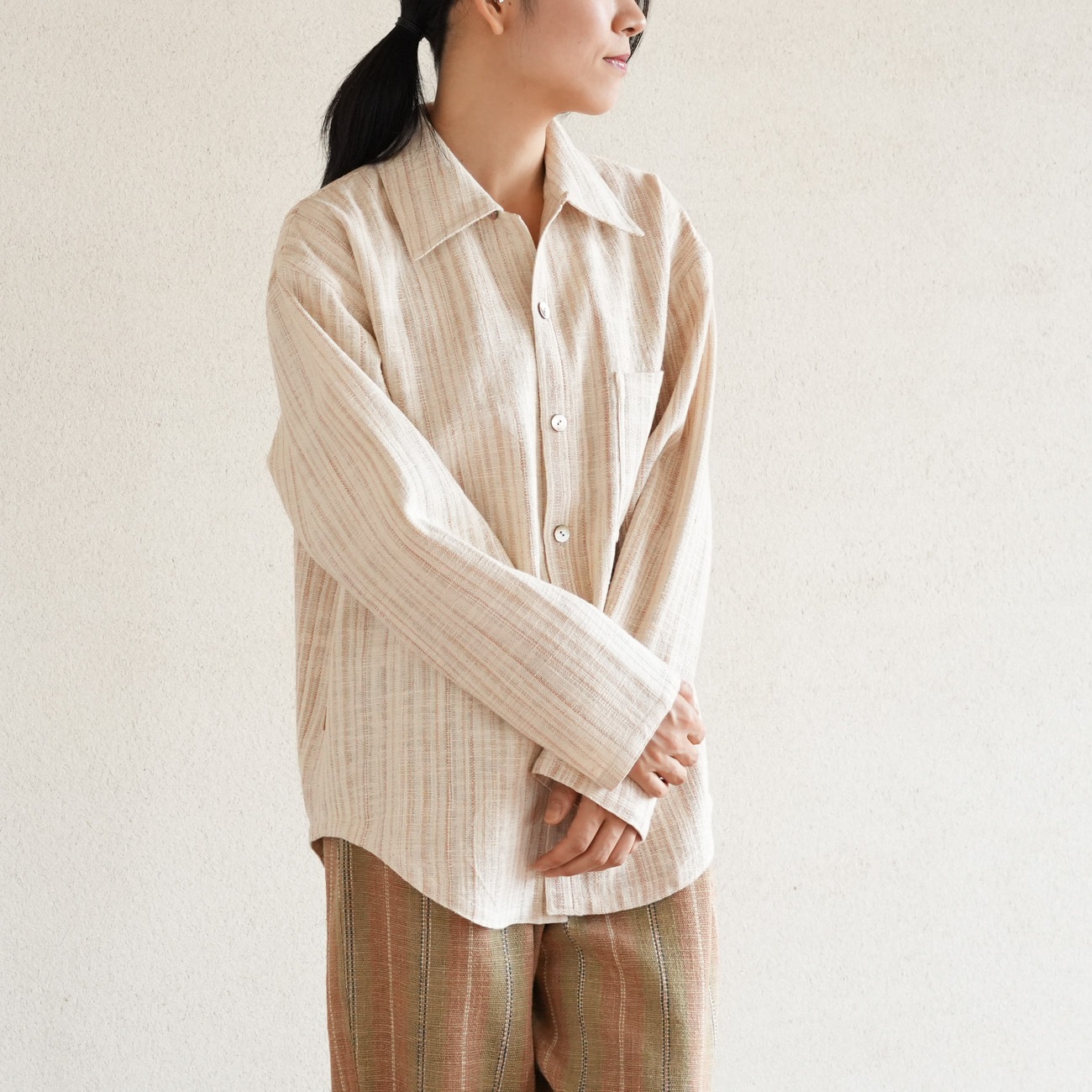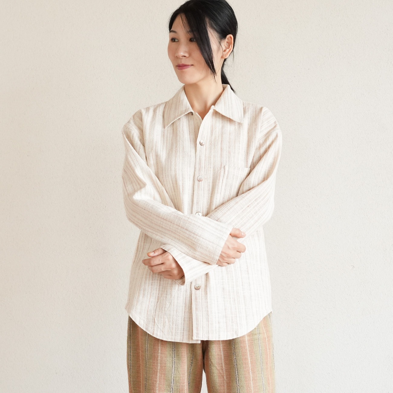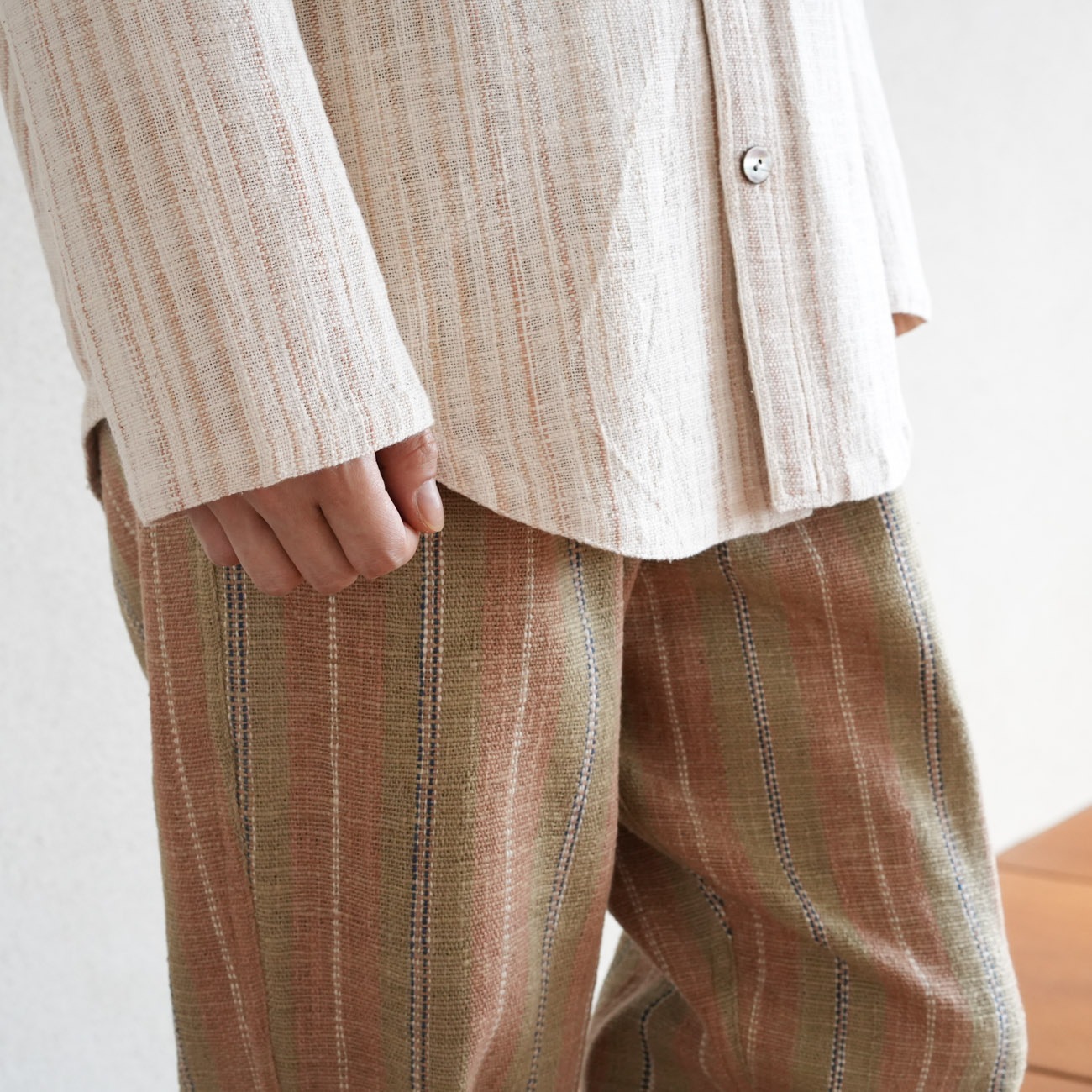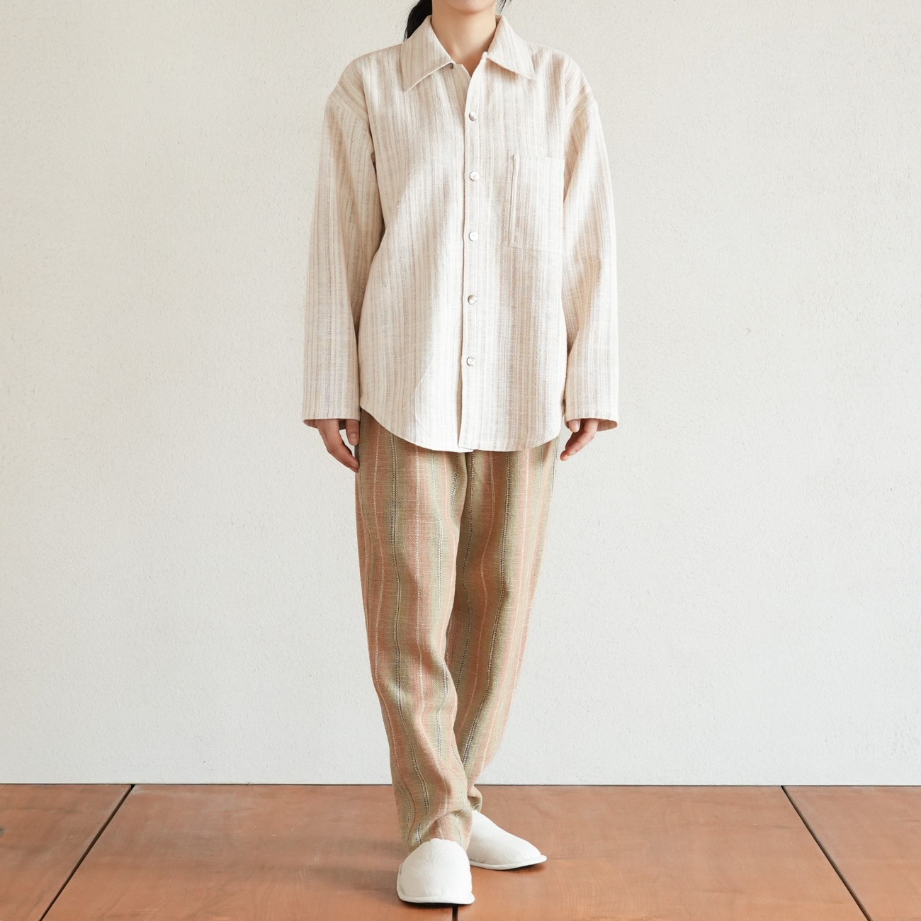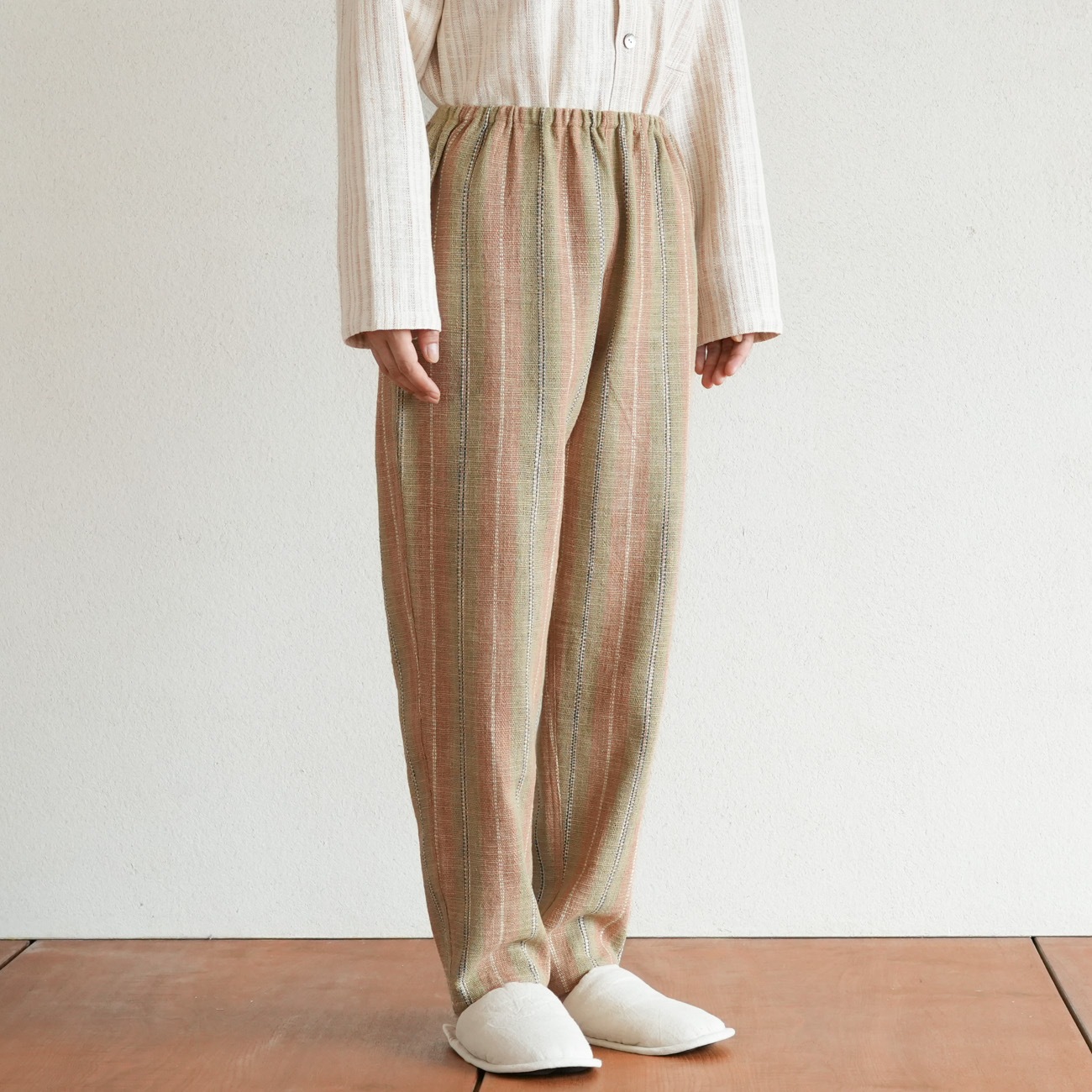 また、織物の生地はほとんど伸縮しませんので、ピッタリではなくゆとりがあるサイズをお選びいただくことをおすすめします。
