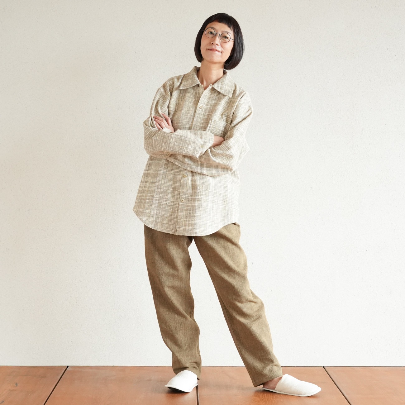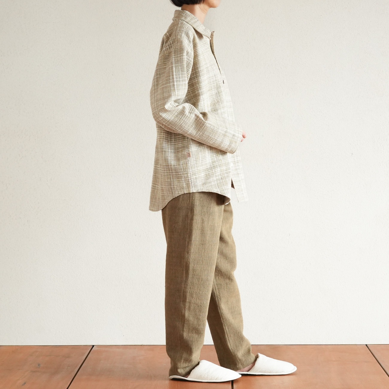 また、織物の生地はほとんど伸縮しませんので、ピッタリではなくゆとりがあるサイズをお選びいただくことをおすすめします。
