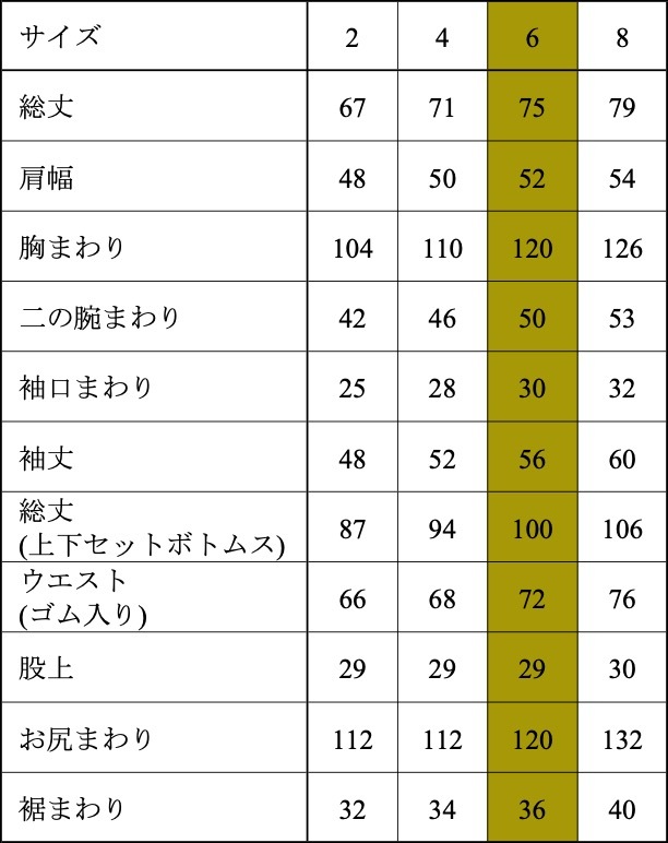 パジャマsize6