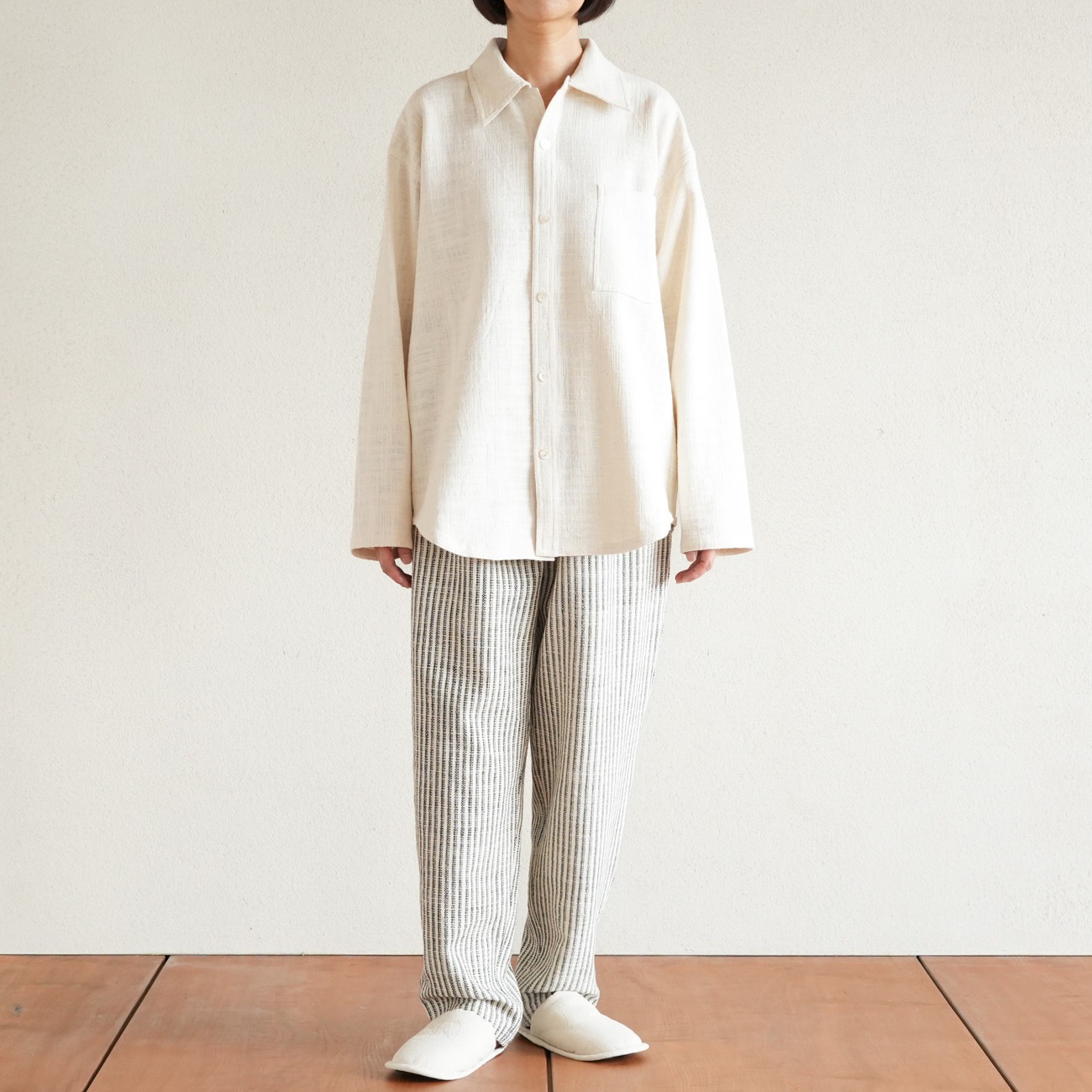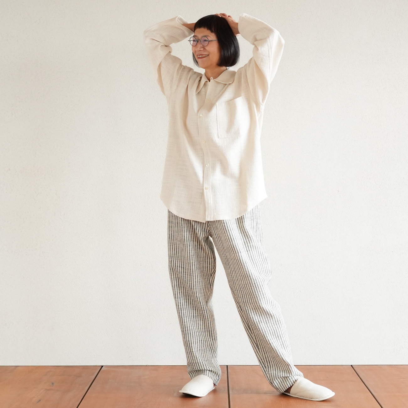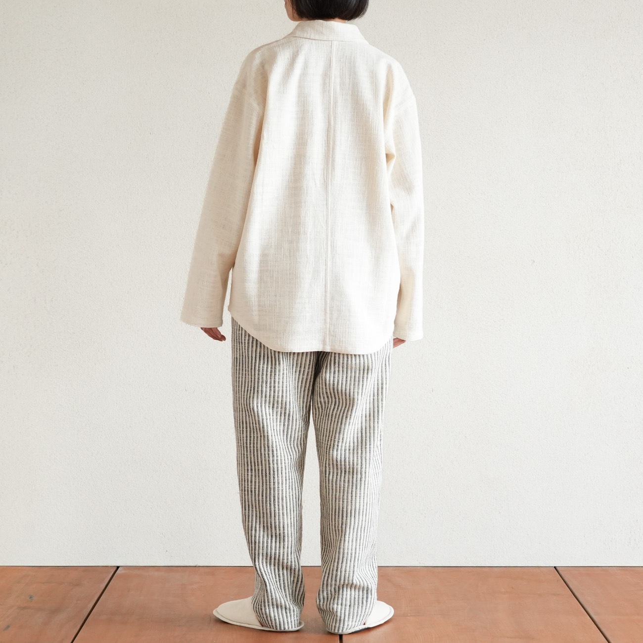 また、織物の生地はほとんど伸縮しませんので、ピッタリではなくゆとりがあるサイズをお選びいただくことをおすすめします。