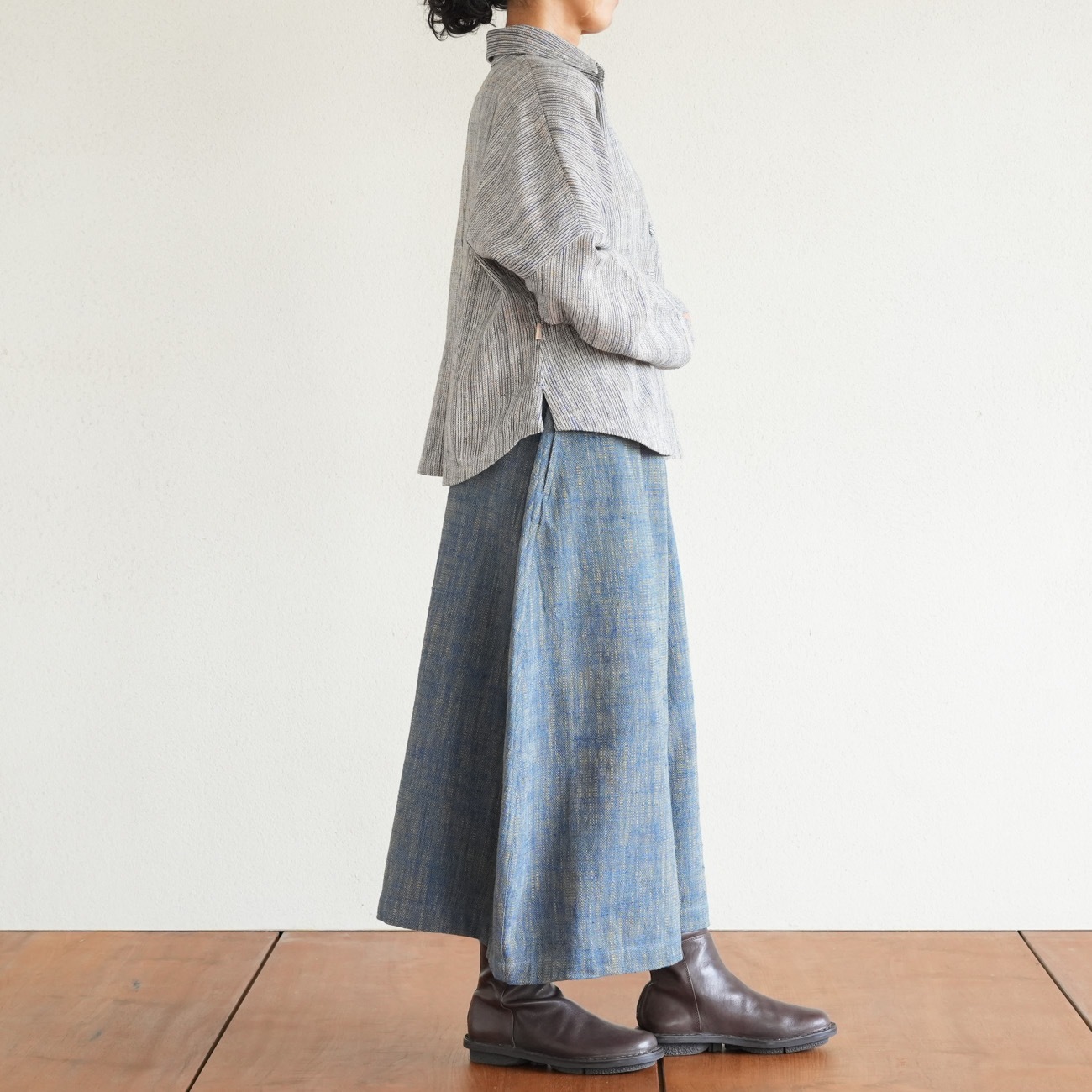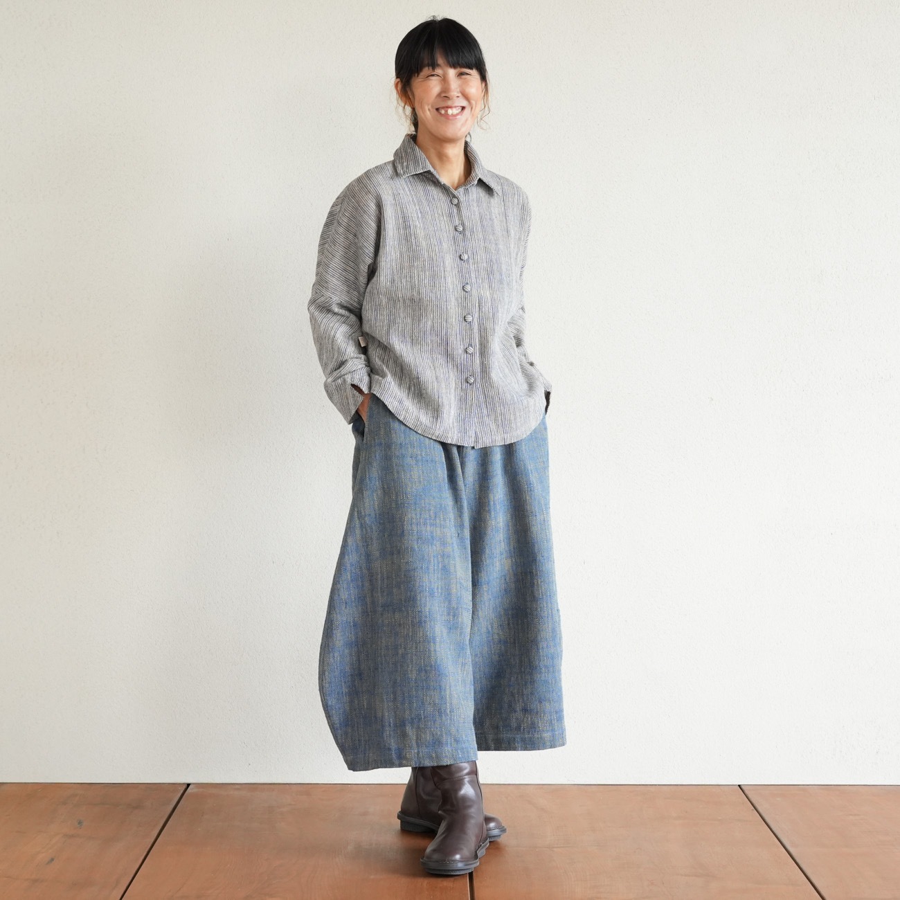 また、織物の生地はほとんど伸縮しませんので、ピッタリではなくゆとりがあるサイズをお選びいただくことをおすすめします。
