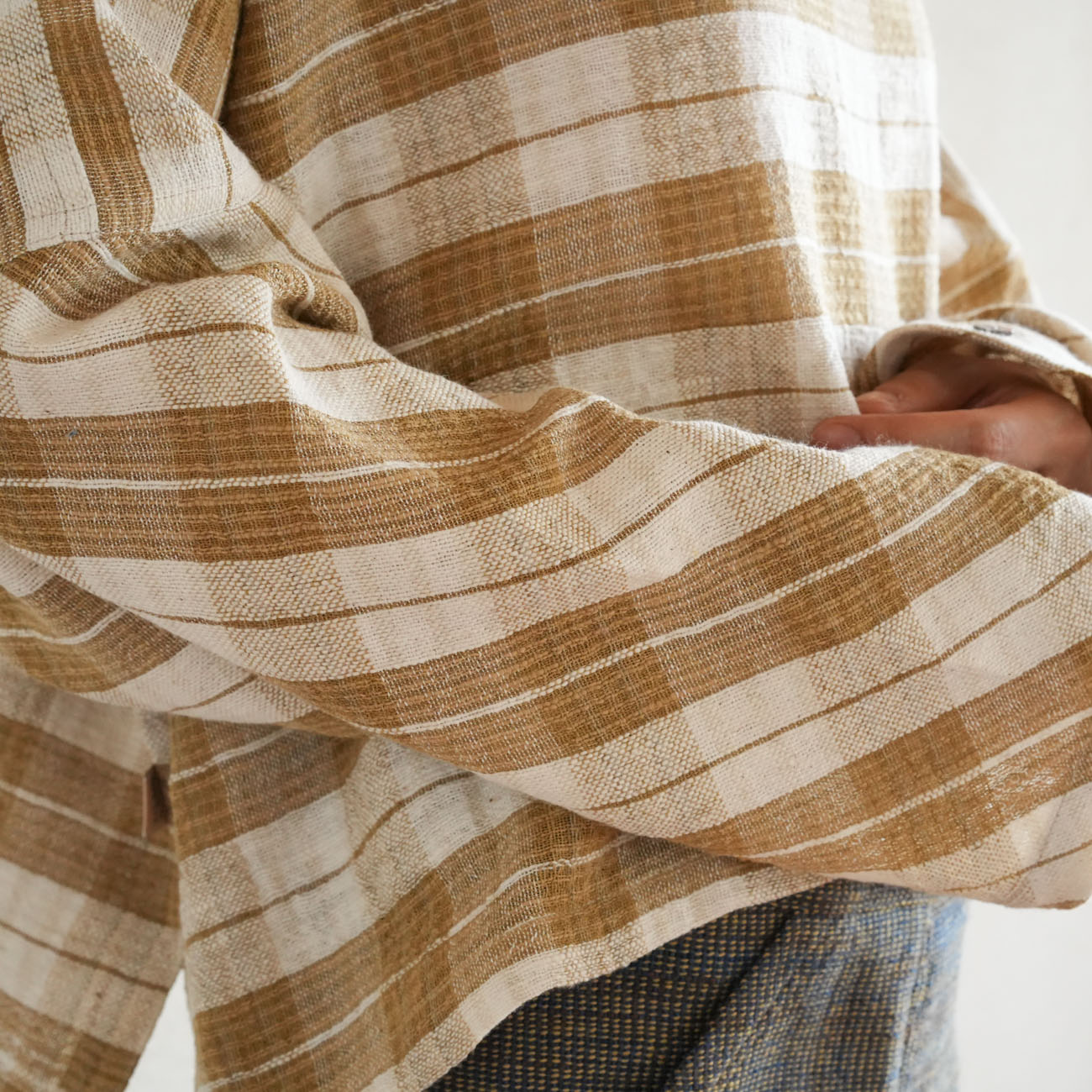 また、織物の生地はほとんど伸縮しませんので、ピッタリではなくゆとりがあるサイズをお選びいただくことをおすすめします。