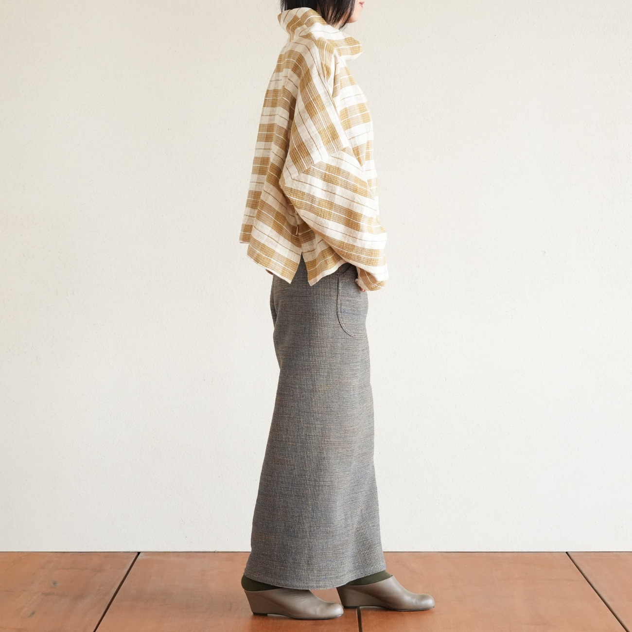 サイドスリットの入った短めの着丈で