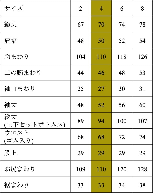 ・ウエスト(ゴム入り)は全く伸ばさずそのままの状態で採寸しています。