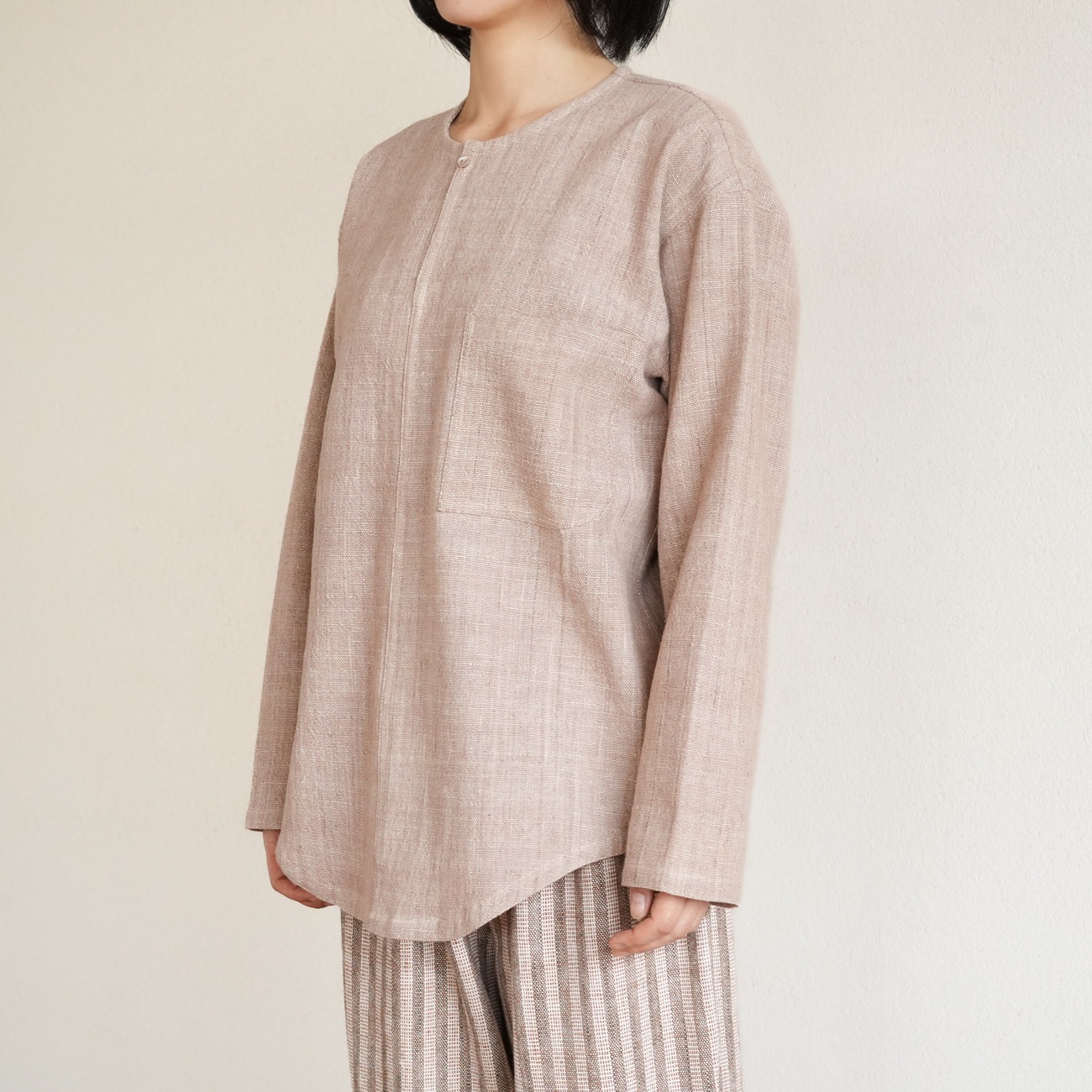 トップスは襟なし