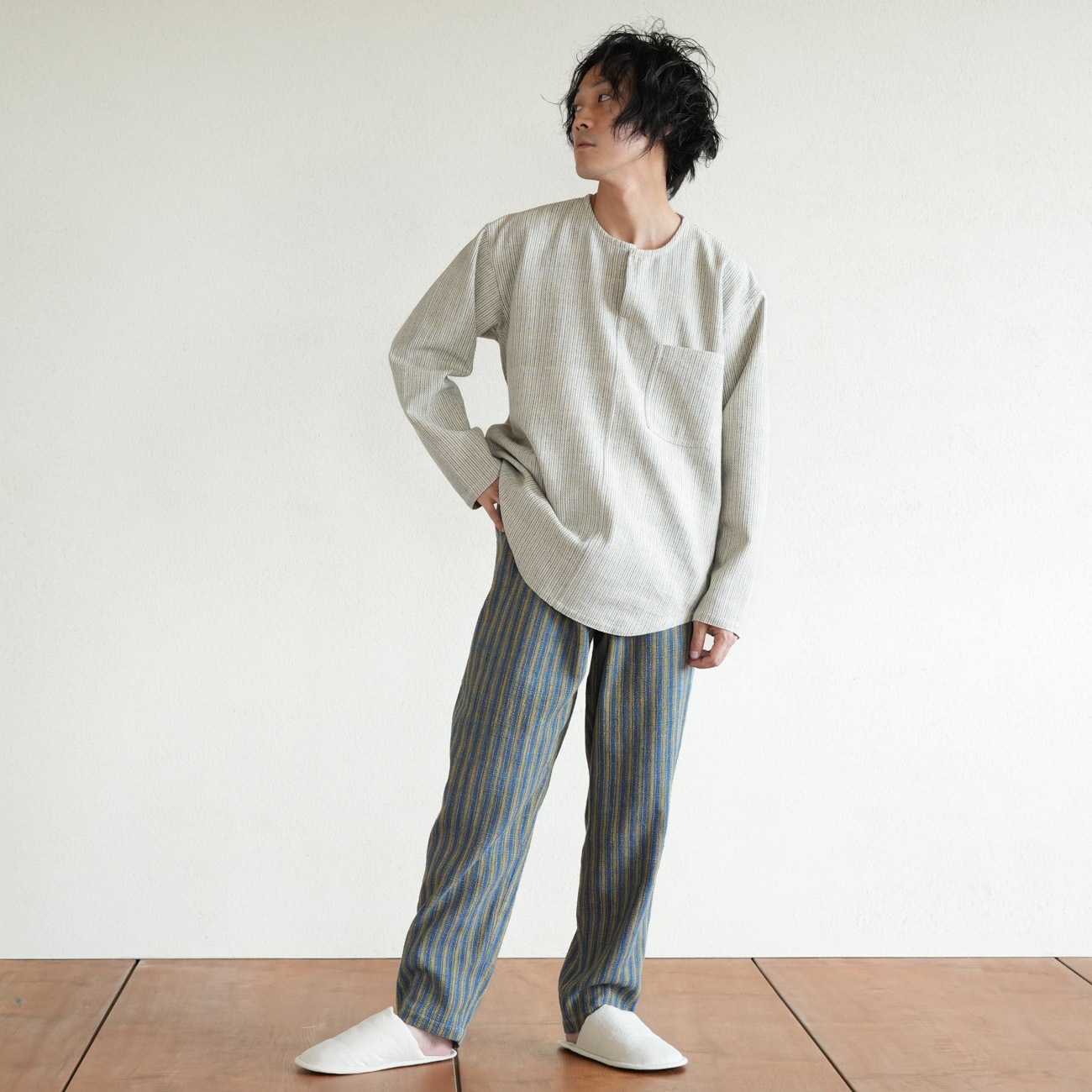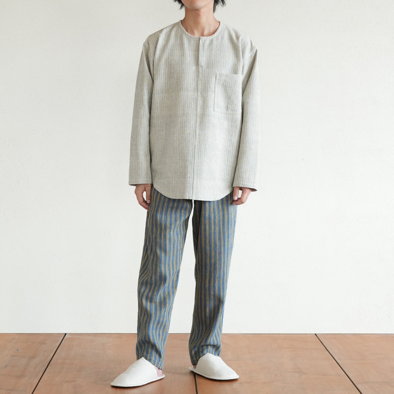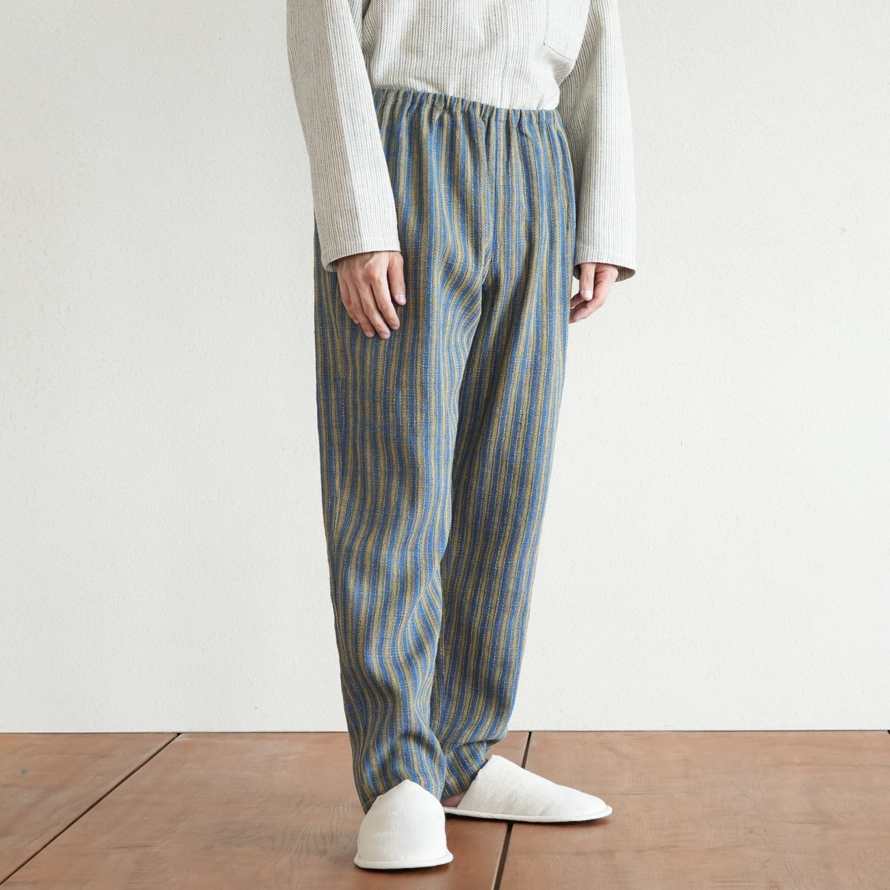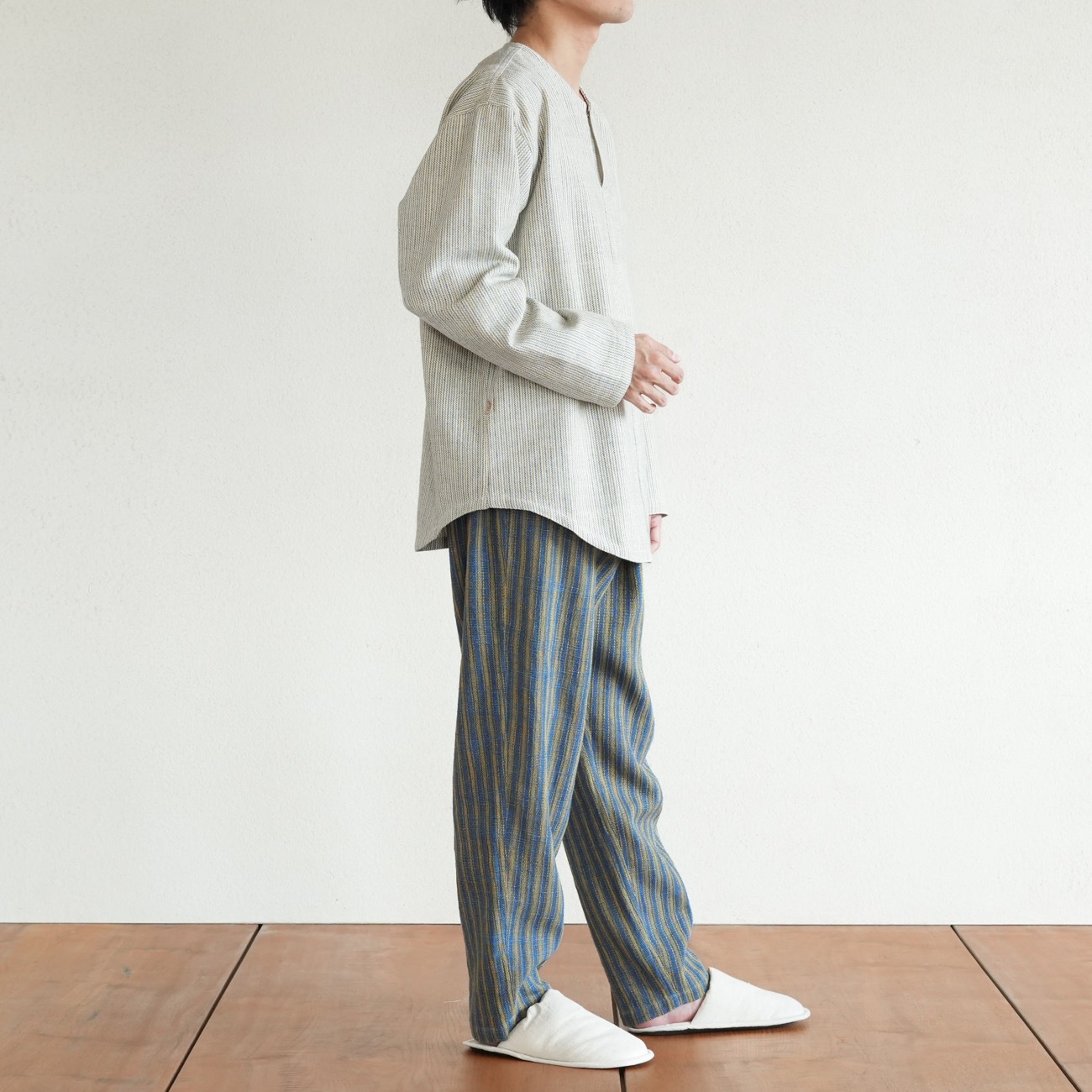 また、織物の生地はほとんど伸縮しませんので、ピッタリではなくゆとりがあるサイズをお選びいただくことをおすすめします。