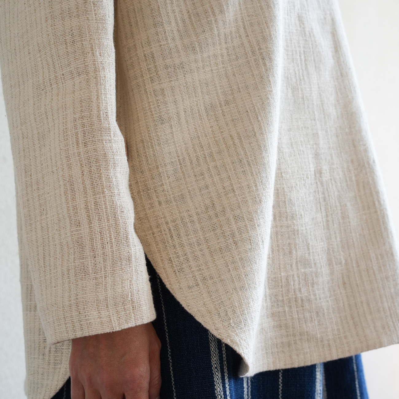 後ろ身頃が少し長い裾はラウンドしており