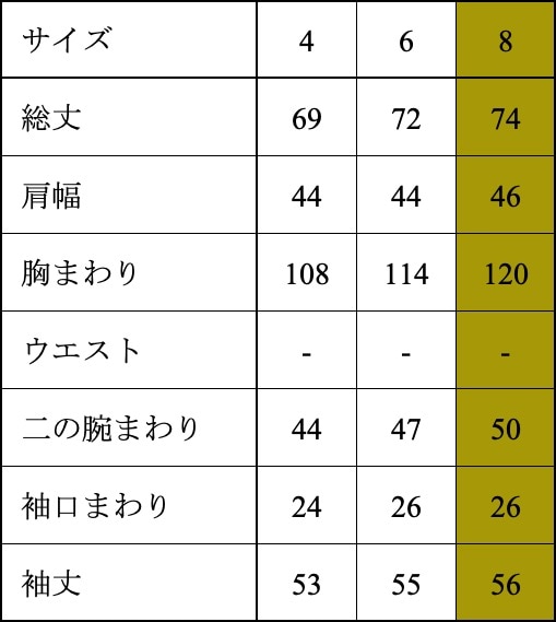 たとえば160㎝前後の方はどの服も4サイズが合うというわけではなく、その服ごとに、いちばん小さい2から、いちばん大きい8までの最大4種類のサイズで展開しています。またフリーサイズ(ワンサイズ)があります。
