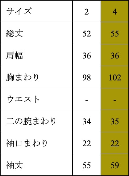たとえば160㎝前後の方はどの服も4サイズが合うというわけではなく、その服ごとに、いちばん小さい2から、いちばん大きい8までの最大4種類のサイズで展開しています。またフリーサイズ(ワンサイズ)があります。