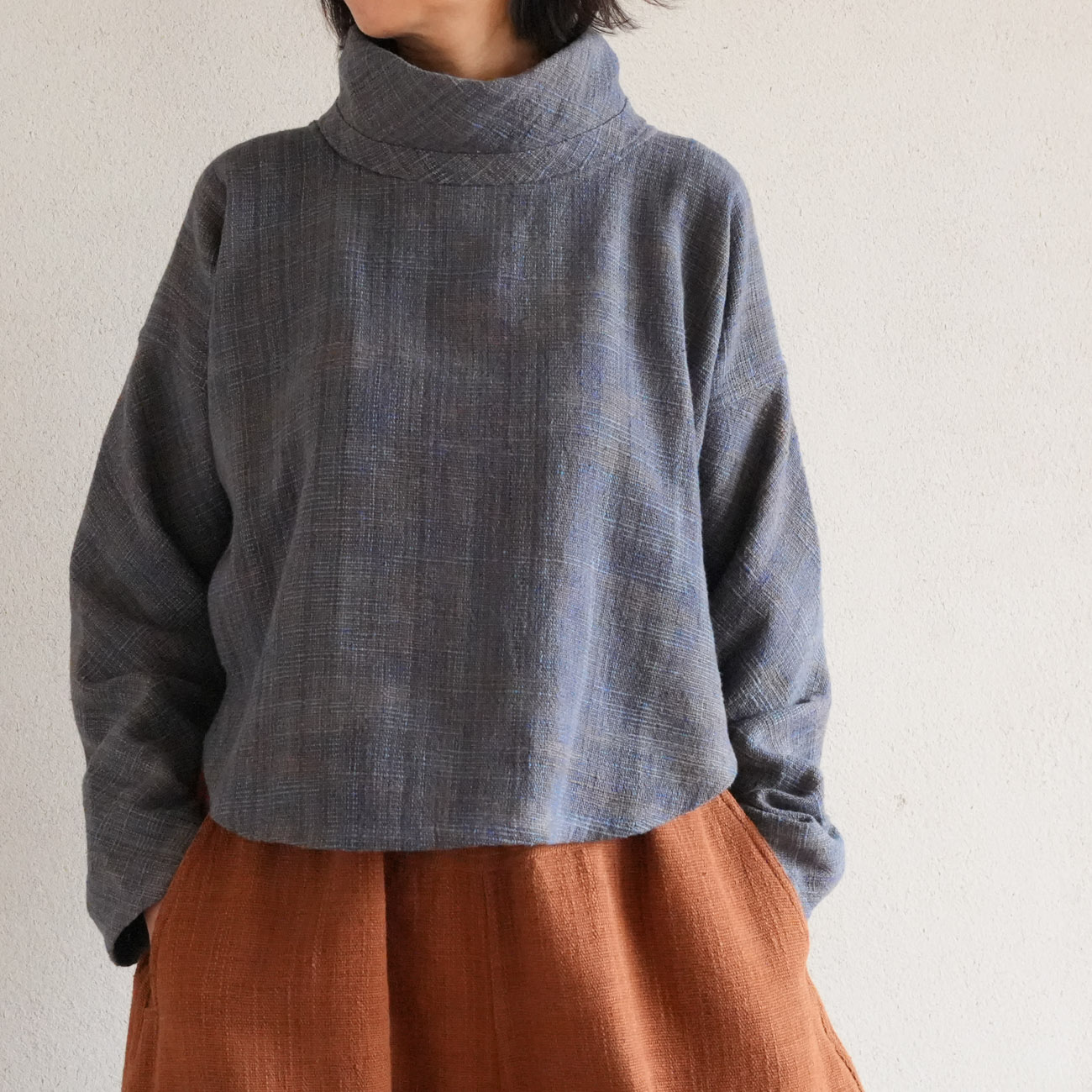 貫頭衣タイプのショート丈のトップスです。