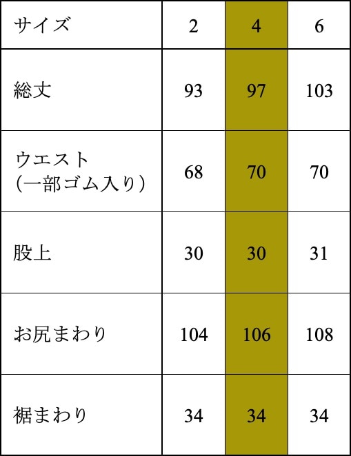 ・ウエスト(ゴム入り)は全く伸ばさずそのままの状態で採寸しています。
