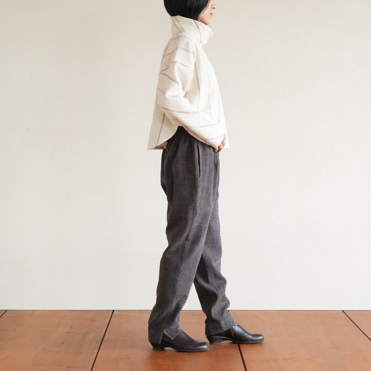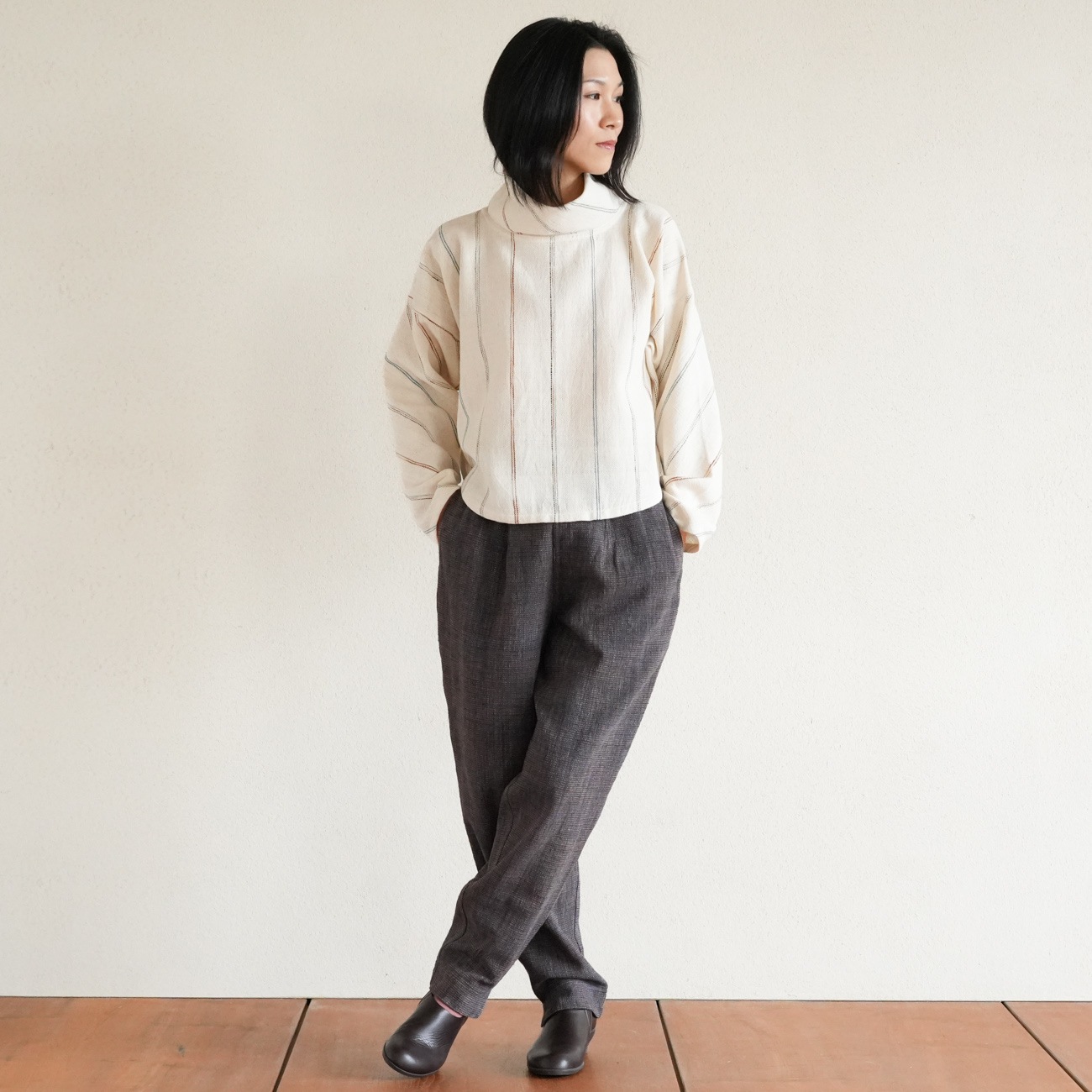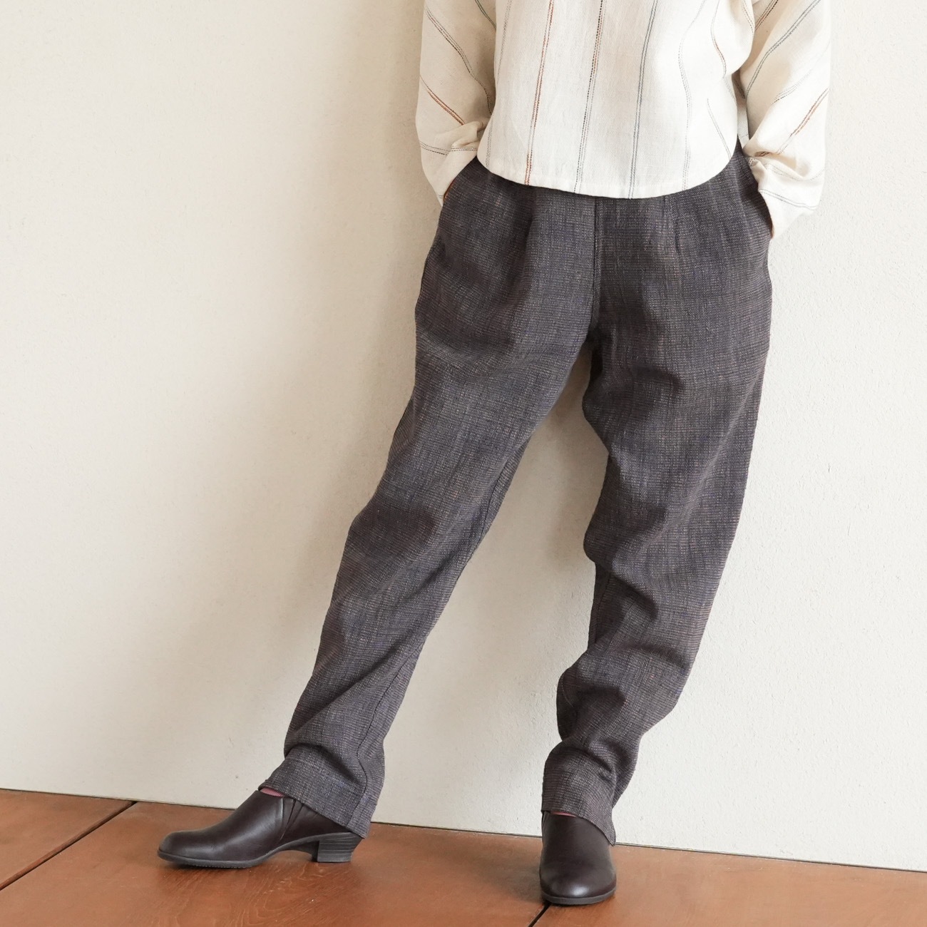 また、織物の生地はほとんど伸縮しませんので、ピッタリではなくゆとりがあるサイズをお選びいただくことをおすすめします。