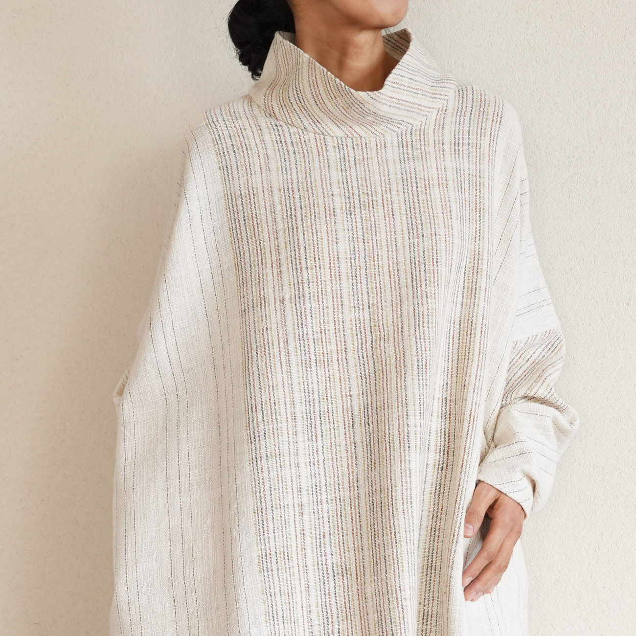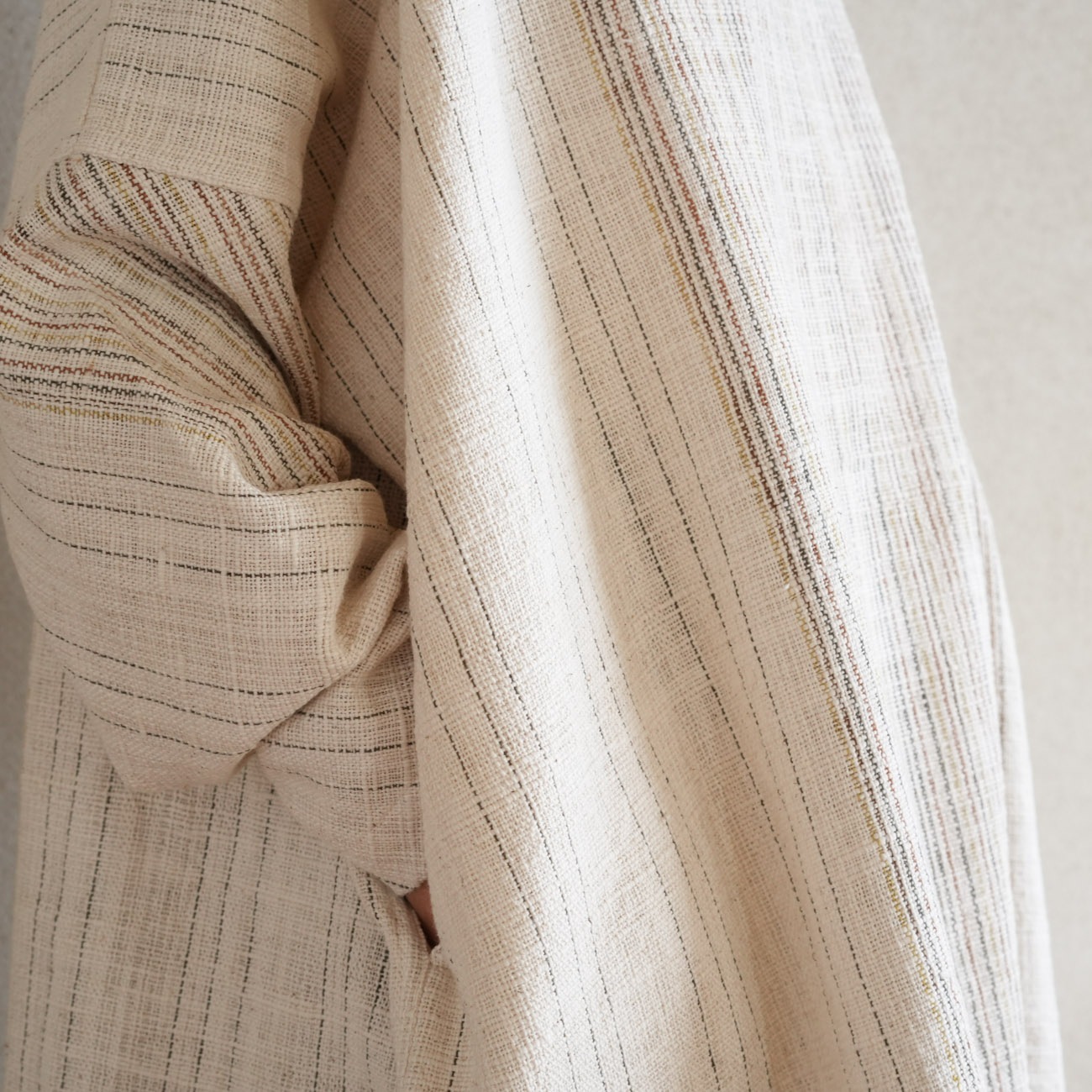 また、織物の生地はほとんど伸縮しませんので、ピッタリではなくゆとりがあるサイズをお選びいただくことをおすすめします。