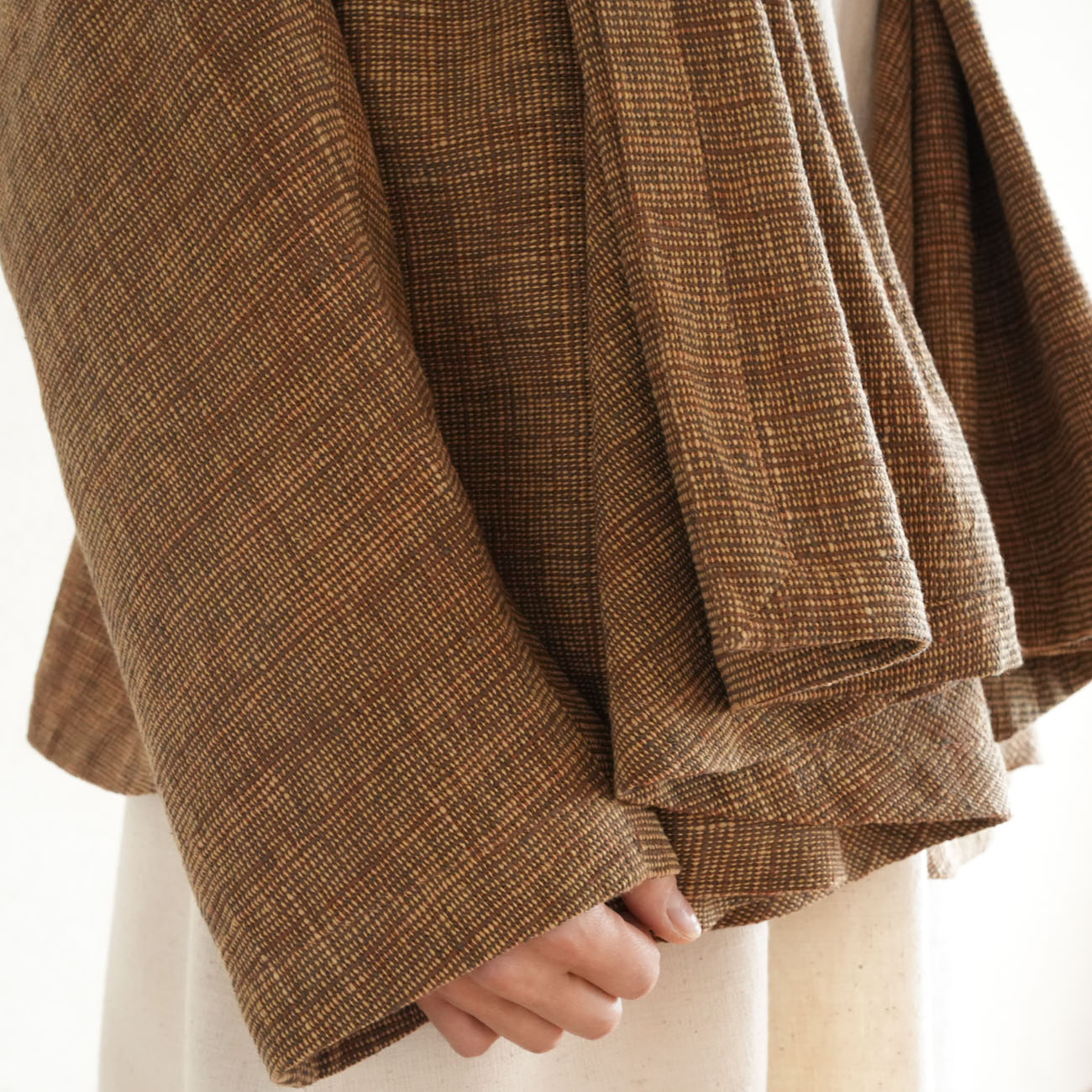 また、織物の生地はほとんど伸縮しませんので、ピッタリではなくゆとりがあるサイズをお選びいただくことをおすすめします。